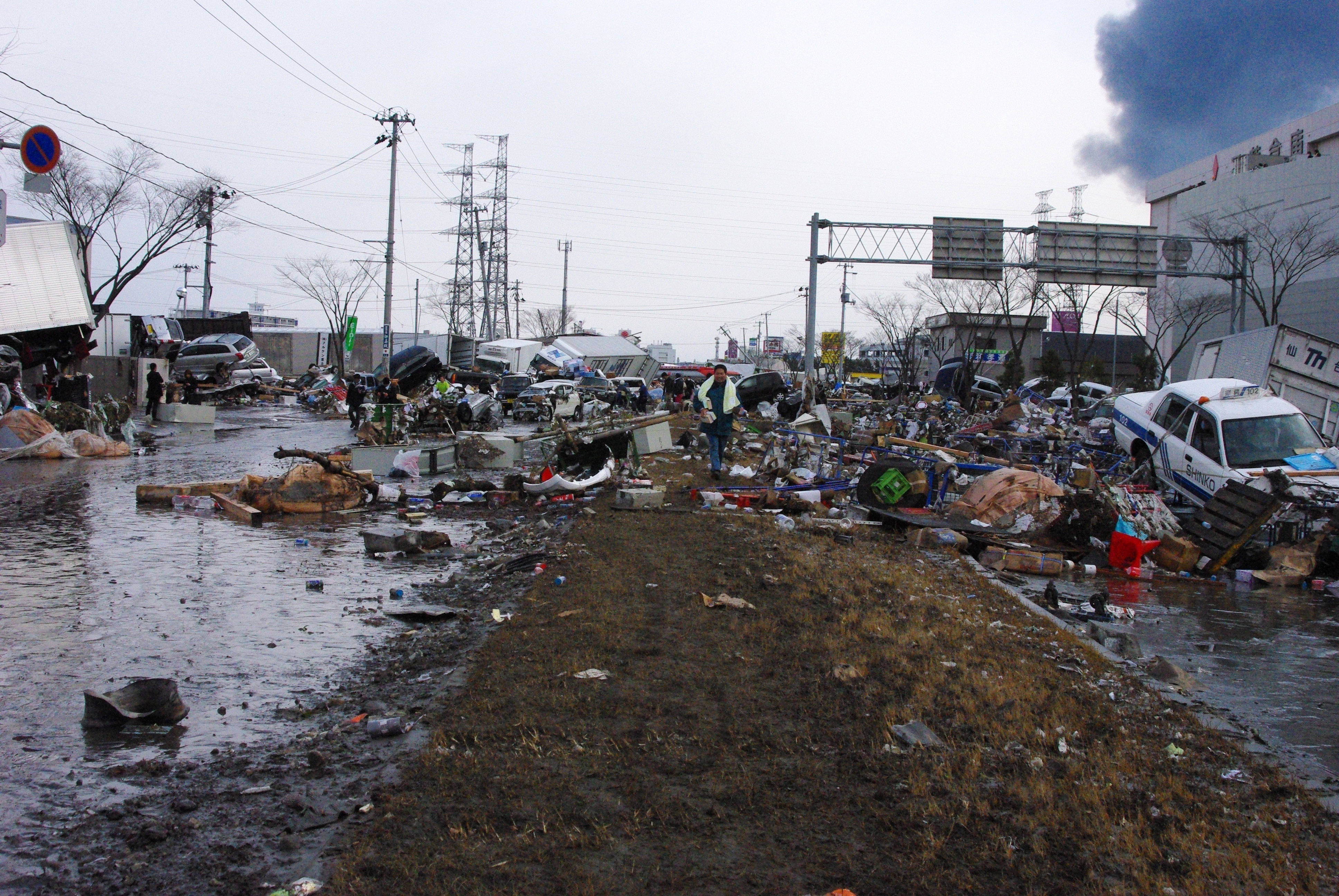 | 解説 | 津波で流された車やがれきが散乱。 |