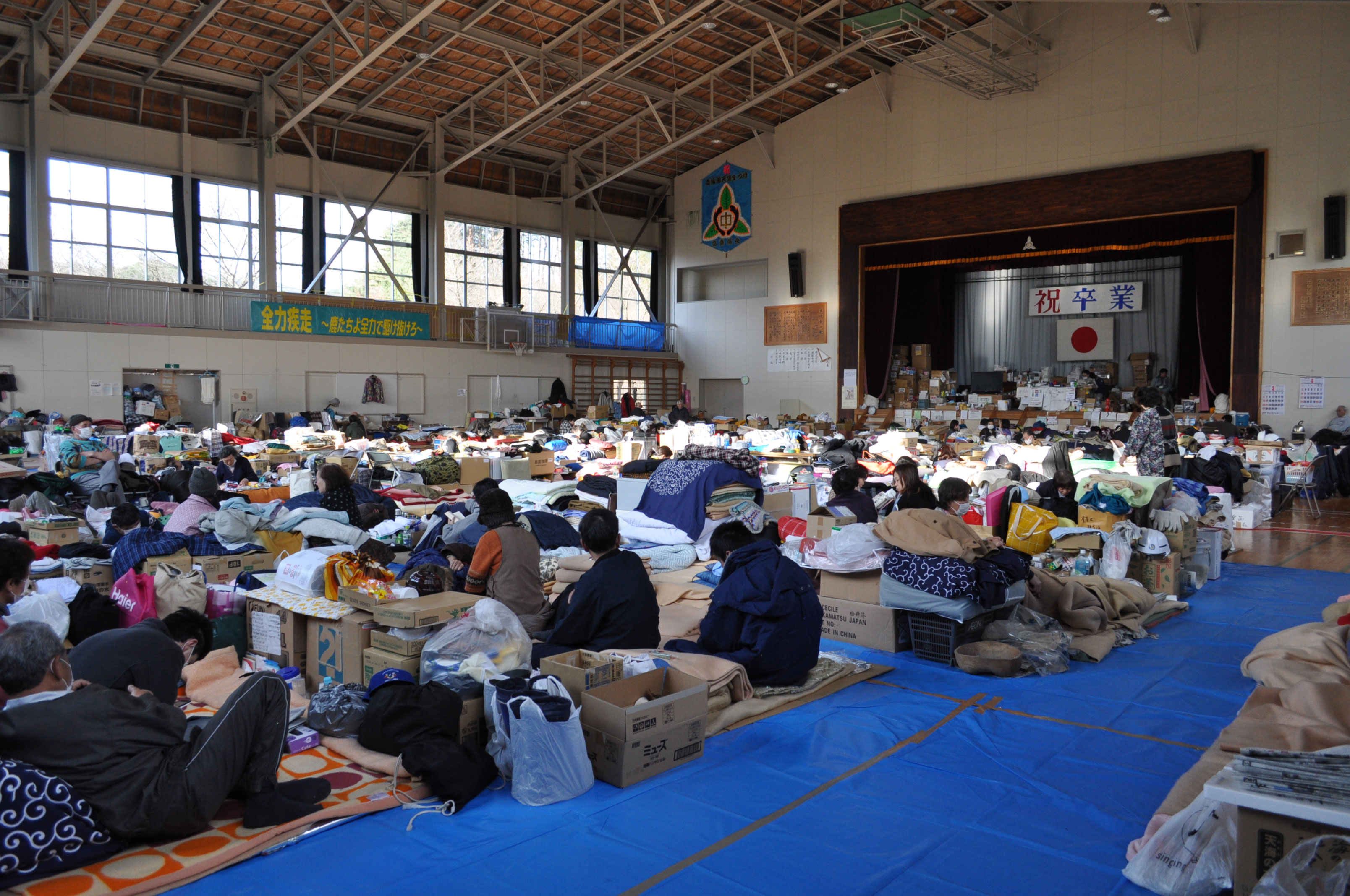 | 検索用キーワード | 避難所 秘書広報課撮影(2011-04-08)鹿折中学校 |