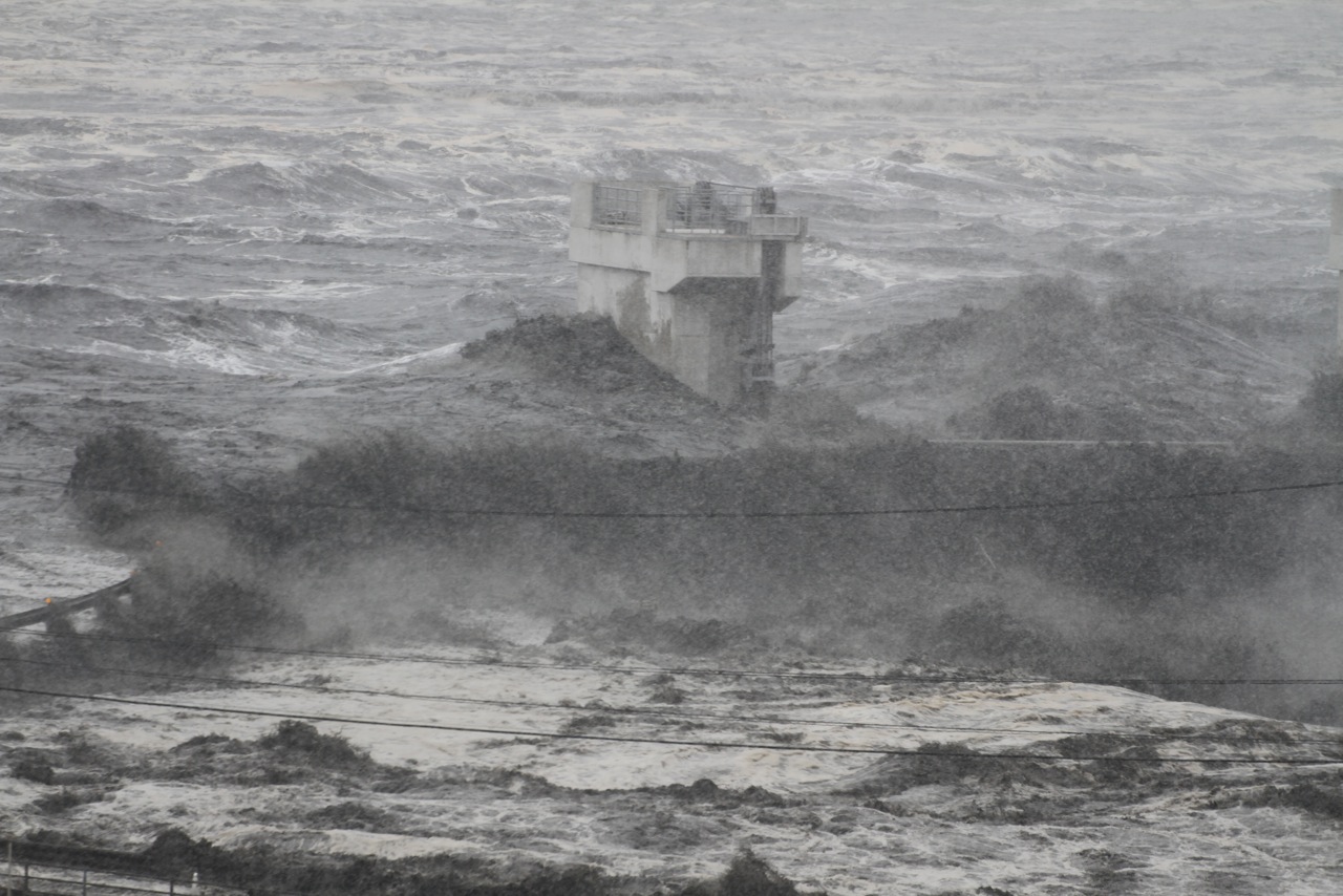 | 解説 | 激流と化し、押し寄せる津波。 |