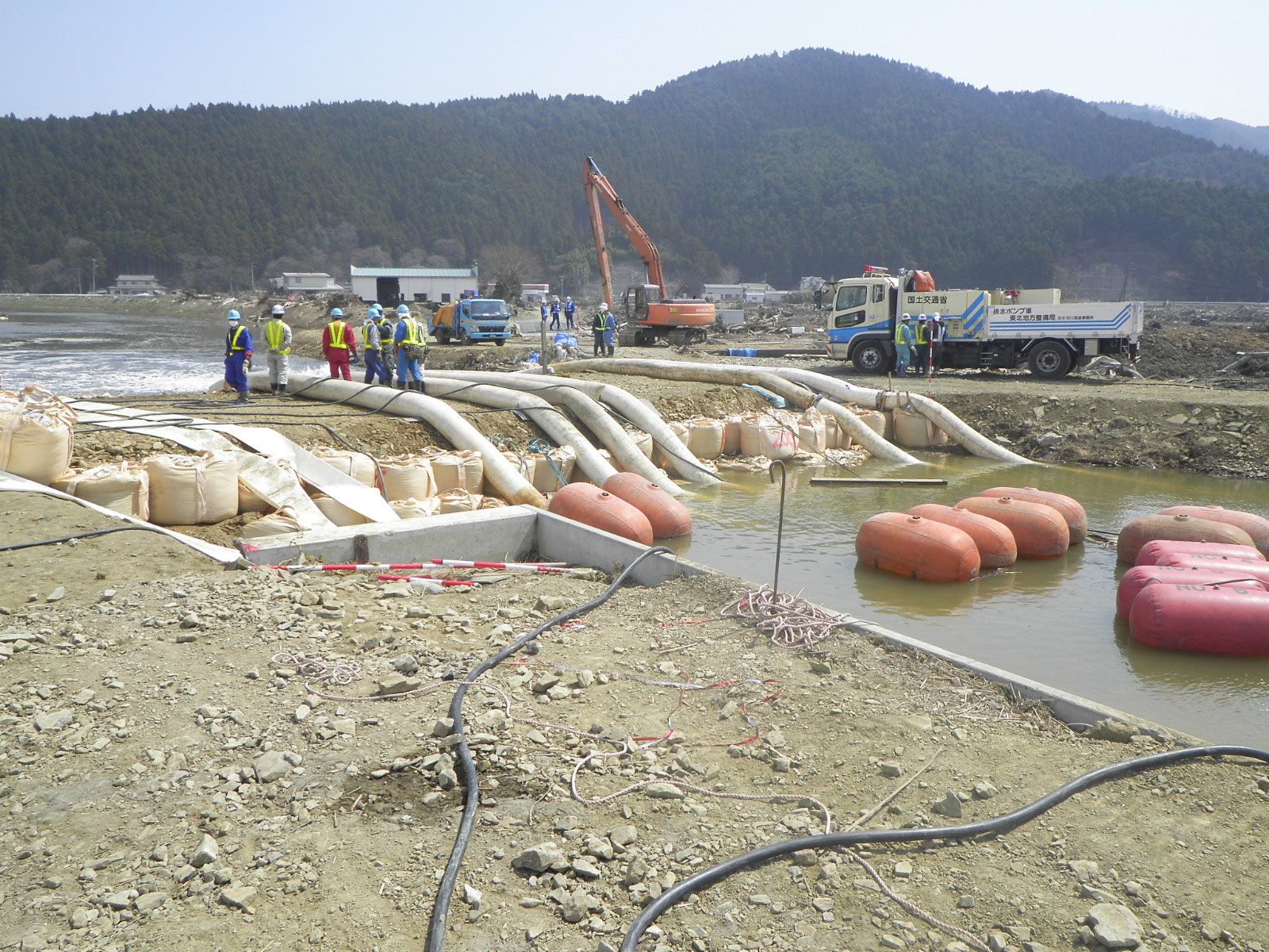 | 解説 | 石巻市釜谷における排水ポンプ車の作業状況。 |