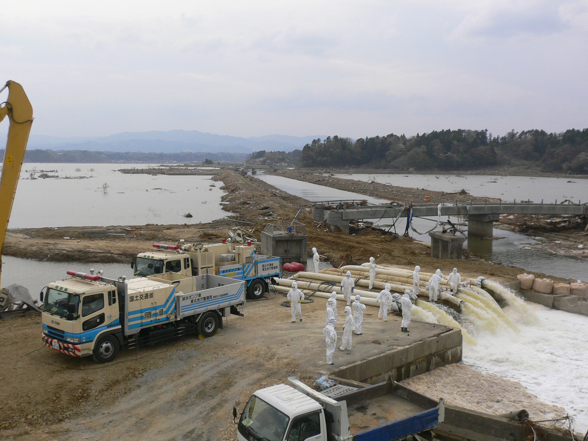 | 解説 | 南相馬市小高における排水ポンプ車の作業状況。 原発20km圏内という過酷な条件での排水作業。 |