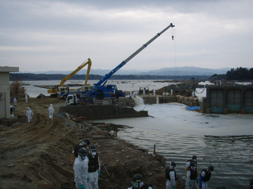 | 解説 | 南相馬市小高における排水ポンプ車の作業状況。 原発20km圏内という過酷な条件での排水作業。 |
