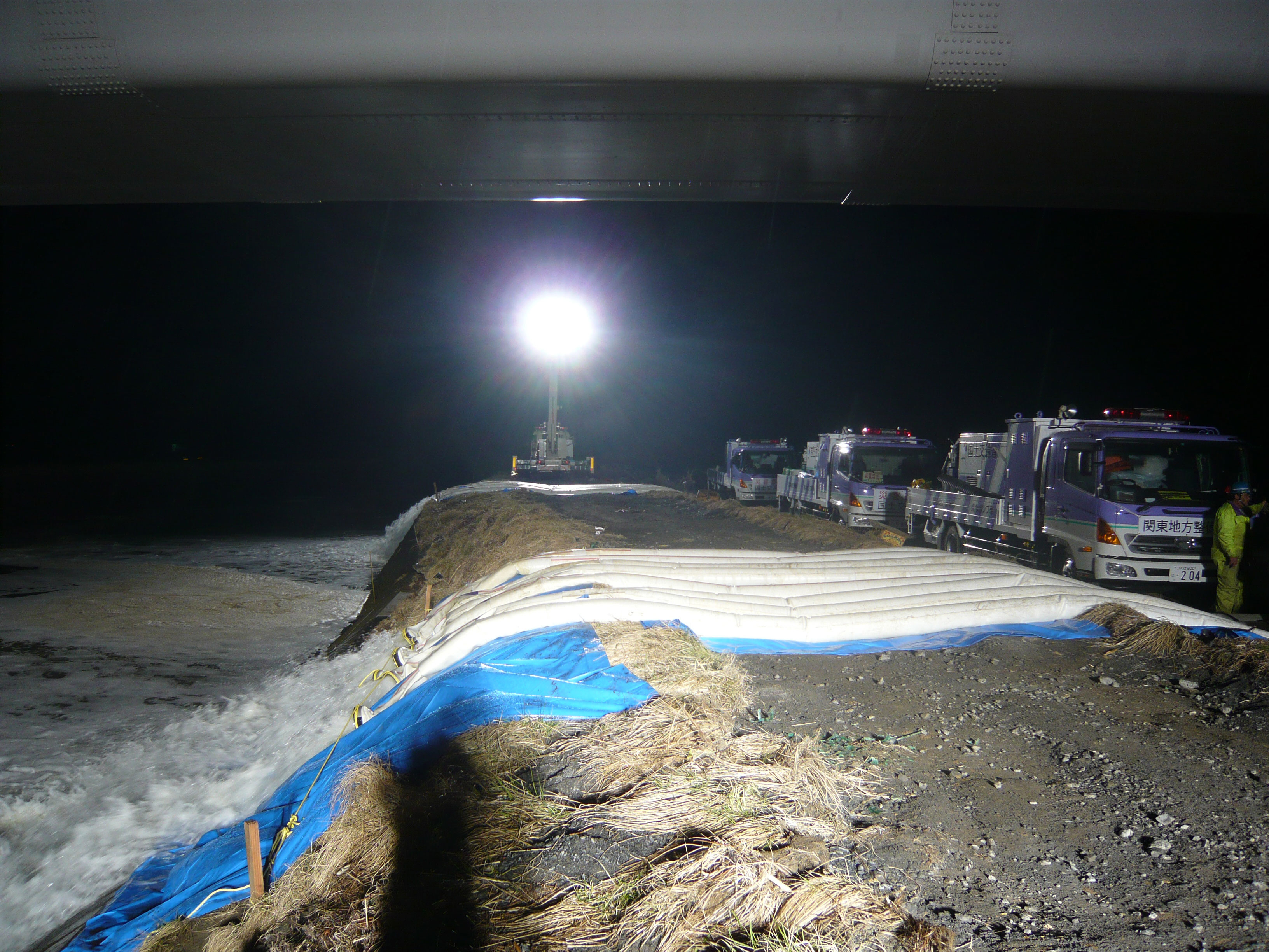 | 解説 | 亘理町枝川釣川における排水ポンプ車の作業状況。 |