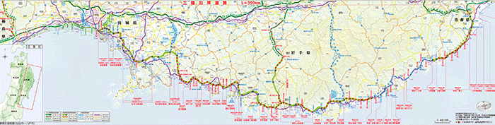 The Nihonkai Engan Tohoku Expressway (between Kisakata and Nikaho), an expressway along the coastline of the Sea of Japan (Nihonkai Engan), was opened to traffic in October 2012, and the Tohoku Odan Expressway (between Miyamori and Towa), connecting inland Iwate and the affected areas of the Sanriku Coast, was opened in November 2012.