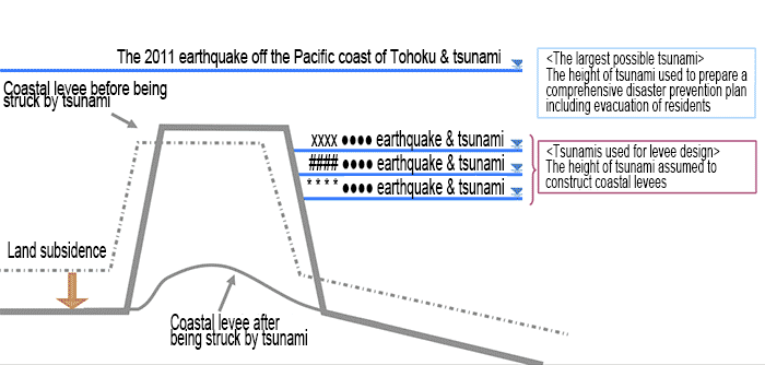 Currently the project has been coordinated with the region’s other projects; in the pipeline is the coastal levees which will be able to sustain tsunami that has a probability of occurrence at intervals of years ranging from several decades to one hundred and several decades. These coastal levees are scheduled to be completed in five years.
