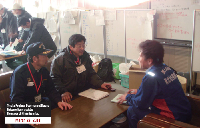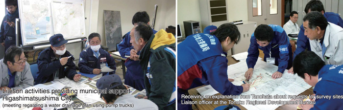 The MLIT staffs were dispatched to the affected prefectures or municipalities, and worked as coordinators in the prefectural or municipal office.