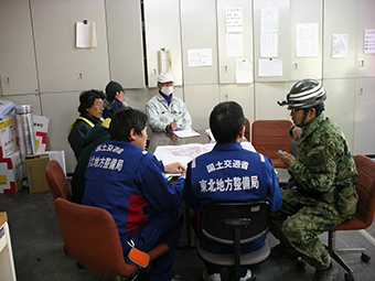 When a disaster strikes, the MLIT Regional Bureau staffs are dispatched to prefectural offices as liaisons for information gathering.