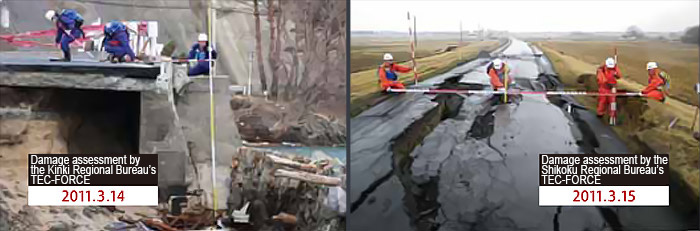 More than 200 members of this Technical Emergency Control Force, called TEC-FORCE for short, arrived at the affected areas two days after the disaster, to investigate the extent of damage. This fast initial response enabled fast temporary restoration works in early stage.