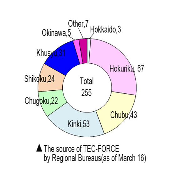 Here are some statistics of the TEC-FORCE dispatched in the Great East Japan Earthquake.