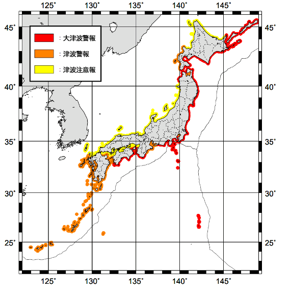 北海道太平洋沿岸東部、北海道太平洋沿岸中部、北海道太平洋沿岸西部、青森県太平洋沿岸、岩手県、宮城県、福島県、茨城県、千葉県九十九里・外房、伊豆諸島 [11日 15:33現在]