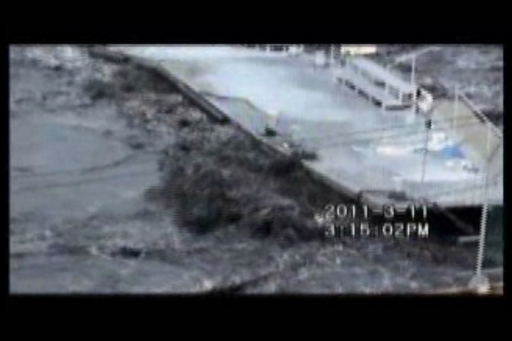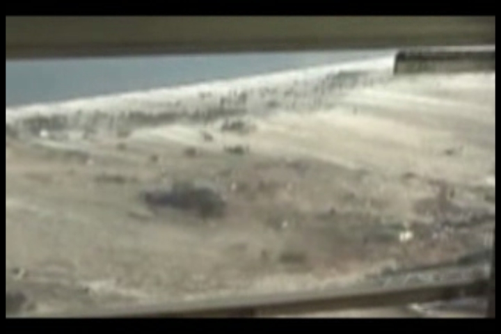 宮城海上保安部所属の巡視船まつしまが、大津波警報を受け、福島県相馬港から緊急出港し、沖合約5kmの海上にて撮影した津波の状況です。