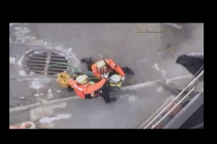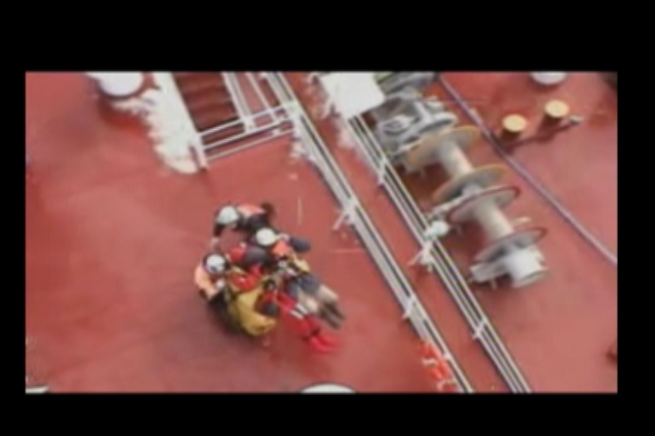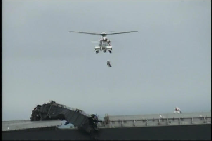 津波被害による救助 建造中の貨物船からの吊り上げ救助 シーン1