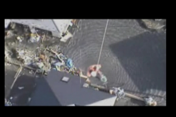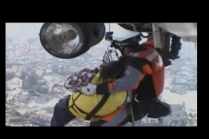 津波被害による救助 気仙沼海上保安署に避難した負傷者吊り上げ救助