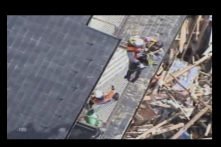津波被害による救助 建造中の貨物船からの吊り上げ救助 シーン2