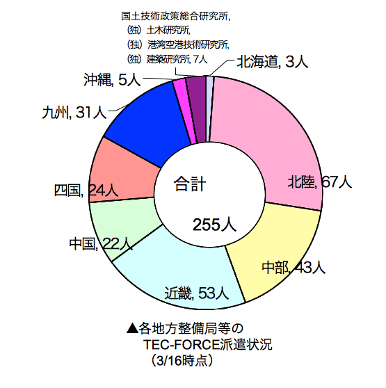 なお、東日本大震災で派遣されたTEC-FORCEについては以下のとおり。