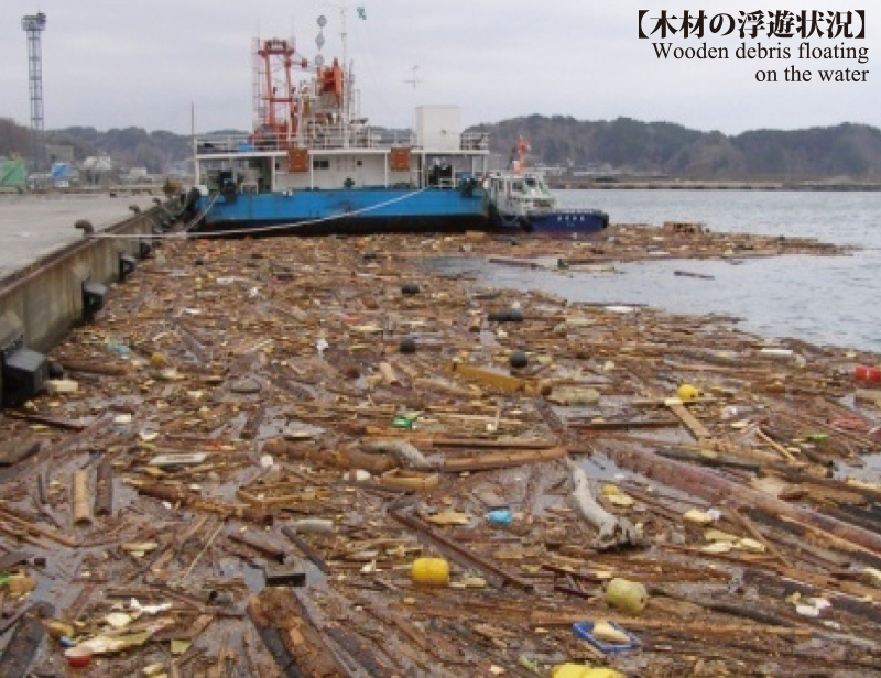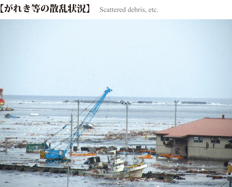 太平洋沿岸に押し寄せた巨大津波により、港湾においても甚大な被害があり、家屋や自動車などが海上に流出し、船舶の入出港が不可能となった。