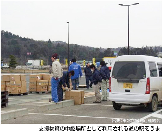 東北管内の道の駅では、被災直後から近隣の多くの避難者を受け入れた。水や食糧の提供をはじめ仮設のトイレ、通行規制などの情報提供も行った。また、支援物資の中継場所や救援活動に携わる人の集合場所、休憩場所にも利用された。
