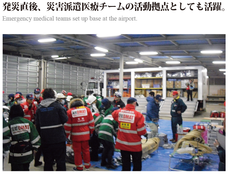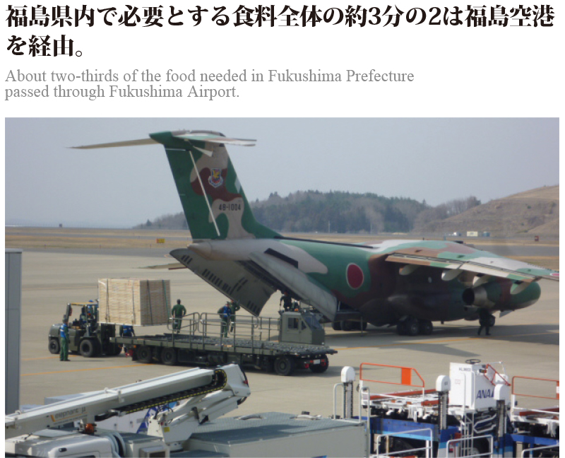 福島空港は、巨大地震や原発事故の複合災害が発生する中、津波被災により機能不全となった仙台空港の代替機能を担い、国内外の救援機や救援物資、旅客臨時便など、24時間体制で運用し受け入れた。